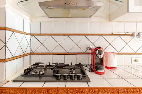 L’alloggio dispone di un giardino frontale, una corte posteriore accessibile dalla cucina e una zona pranzo all'aperto. Al suo interno sono presenti quattro camere da letto arredate con cura, un soggiorno con divano letto per due persone e quattro televisori a schermo piatto. La cucina è completamente attrezzata con microonde e forno. I tre bagni, dotati di bidet e doccia, vengono forniti completi di asciugamani e biancheria da letto.